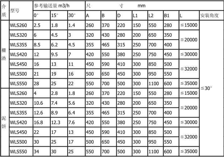 2功率配備應(yīng)根據(jù)工況、輸送介質(zhì)、安裝角度和輸送長度確定;