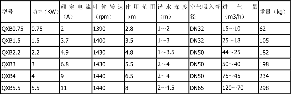 QXB 型離心式潛水曝氣機(jī)用于污水處理廠曝氣池、曝氣沉砂池,對污水污泥的混合液進(jìn)行充氧及混