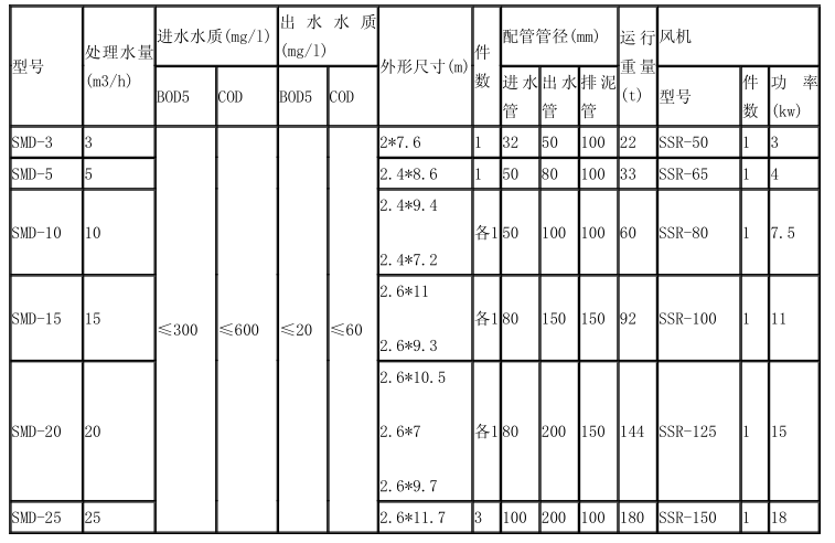 說明:1、當(dāng)進(jìn)水 BOD5≤200mg/l,則出水 BOD5≤30mg/l